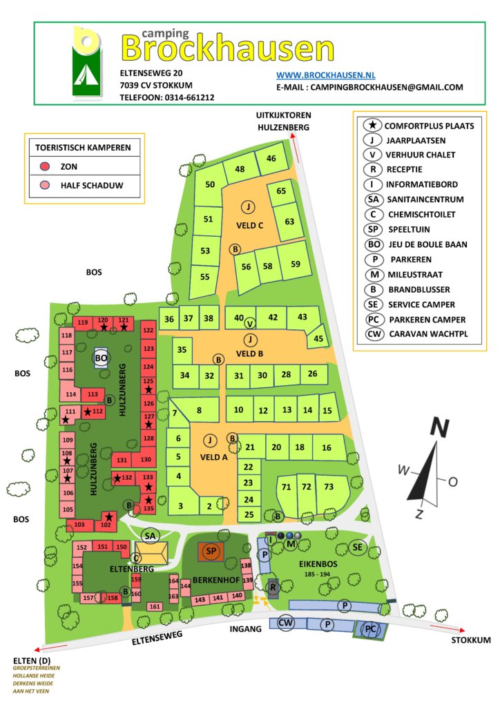 Op de plattegrond krijgt u een goed beeld van hoe het terrein is ingedeeld – van de kampeerplaatsen en jaarplaatsen tot het groepsterrein, de camperplaatsen en het sfeervolle chalet.
